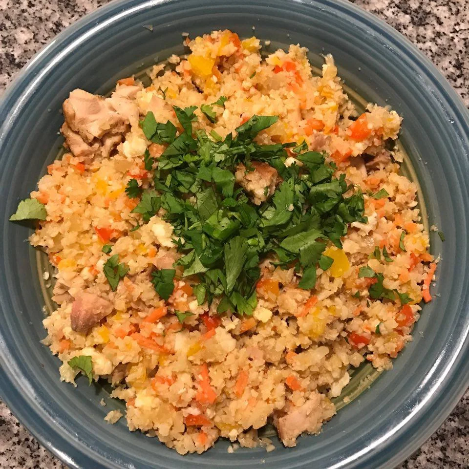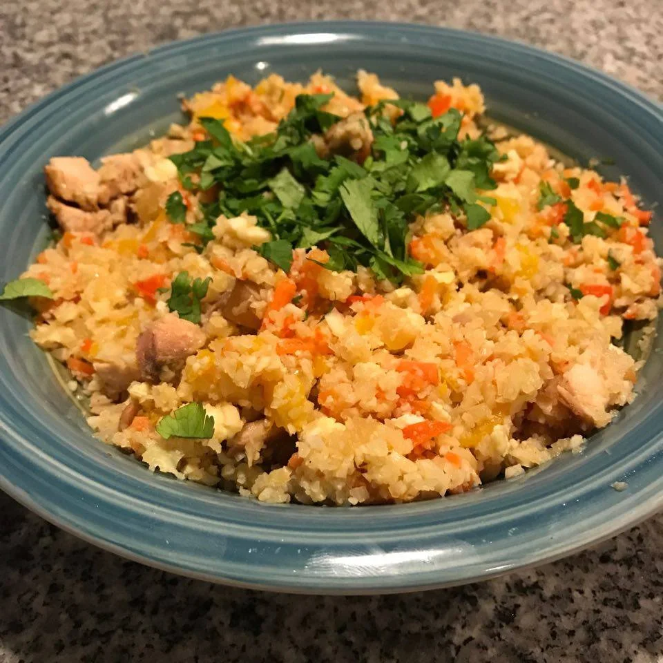 /Who doesn't love fried rice? This was so good, you won't even miss the real thing! If you've never had cauliflower rice, trust me, you will not be disappointed. Cauliflower rice is one of my favorite ways to eat vegetables. This dish is loaded with veggies!!