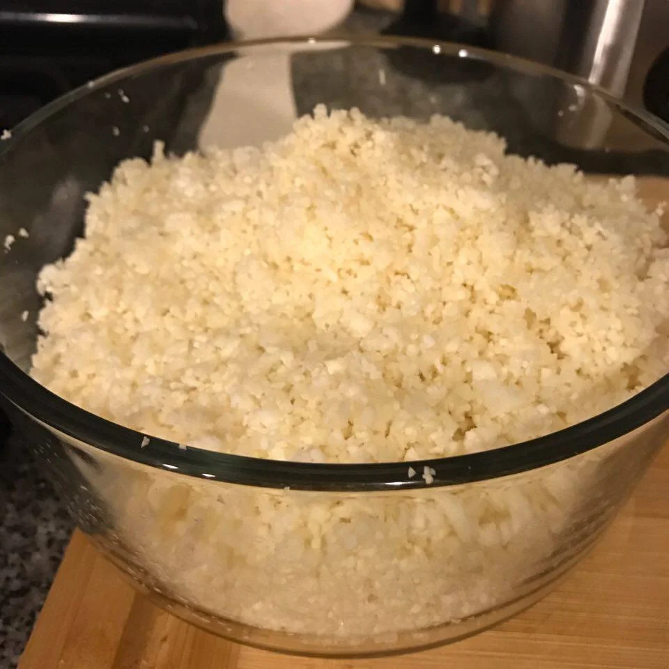 I chopped the cauliflower in a food processor. It makes it much easier to cut it into rice size pieces.
